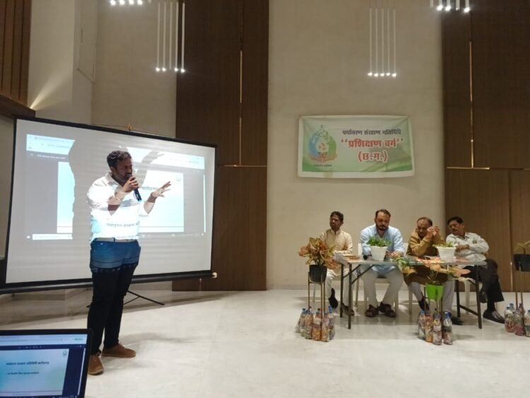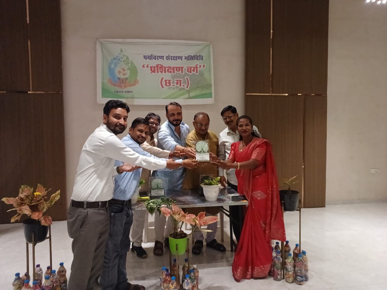 राजनांदगांव पर्यावरण संरक्षण गतिविधि के एक दिवसीय पर्यावरण कार्यशाला आयोजित की गई पर्यावरण संरक्षण गतिविधि के जिला एनजीओ प्रमुख सौरभ खंडेलवाल एवं जिला सहसंयोजक सूरज गुप्ता व नगर एनजीओ प्रमुख विनय साहू , ने बताया कि पर्यावरण संरक्षण गतिविधि के जिला संयोजक मयंक शर्मा के कुशल नेतृत्व में एवं शहर संयोजक निकुंज सिंघल की कर्तव्य परायणता लगन व, नगर नारी शक्ति प्रमुख मौसमी शर्मा की कार्य कुशलता व नगर संयोजक राजकुमार चौरसिया पानी आयाम प्रमुख की अतिथियों द्वारा सहर्ष सरहाना की गई कार्यक्रम स्थल को पेड़ पौधे की हरियाली से युक्त एवं ईकोब्रिक्स की बोतलों से सुंदर सजाया गया प्रातः 10:30 बजे औषधि युक्त पौधे का पूजन करते हुए नगर कचरा प्रबंधन प्रमुख राकेश साहू द्वारा शुमधुर गीत की प्रस्तुति के साथ एक दिवसीय पर्यावरण कार्यशाला प्रारंभ हुई कार्यशाला का उद्देश्य जल जंगल जमीन पेड़ पानी पॉलिथीन, ईकोब्रिक्स पर पर्यावरण संरक्षण के विभिन्न आयामो पर रहा मुख्य अतिथि जल आयाम के मुख्य वक्ता अनुज नॉर्दर्न दुर्ग द्वारा अपने उद्बोधन से उपस्थित पर्यावरण प्रेमी जनों में एक नई क्रांति का संचार पर्यावरण सजगता के प्रति किया जल संचय के विषय में उन्होंने अनेक वृतांत बताएं और आगे कहा की वृक्षों के संरक्षण में सर्वप्रथम बलिदान देने वाली अमृता देवी के बलिदान को याद करते हुए उपस्थित जन भाव विभोर हो गए जैव विविधता पर कमला कॉलेज के प्राचार्य ओंकार लाल श्रीवास्तव ने कहा कि प्रकृति ने हमें बहुत कुछ दिया है प्रकृति के बिना मनुष्य जीवन की कल्पना असंभव है उन्होंने विभिन्न प्रजातियों के पेड़ पौधों की उपयोगिता के बारे में विस्तार से बताया पर्यावरण संरक्षण गतिविधि के संरक्षक पूर्व सांसद प्रदीप गांधी ने अपने उद्बोधन में कहा की हमने विभिन्न गांव में ग्रामीण जनों की सहभागिता से अनेक तालाबों का संरक्षण किया पर्यावरण प्रेम एकता और संकल्प सिद्धि से पर्यावरण को सहेज कर उसकी सुंदरता को बढ़ावा देना होगा वक्ताओं में पर्यावरण विभाग प्रमुख मनोहर लालचंदेल ने कहा कि जल जंगल जमीन पॉलिथीन पर आज एक दिवसीय विस्तृत कार्यशाला में आप सभी श्रोताओं की भूमिका पर्यावरण संरक्षण में महत्वपूर्ण भूमिका निभाएगी विशेष अतिथि नगर के एस एल आर केंद्र प्रमुख प्रेमा सोनकर दीदी ने अपनी स्वच्छता मित्र दीदियों की कचरा संग्रहण के प्रति सजगता और उनकी कर्तव्य परायणता को नमन करते हुए संस्कारधानी नगरवासियों से विशेष सहयोग का निवेदन किया साथ ही प्लास्टिक मुक्त अभियान के तहत कैलाश धाम महिला शक्ति समिति शांति नगर की दीदीयो के बर्तन बैंक के समूह को विशेष अतिथि के रूप में आमंत्रित किया गया था उपस्थित सभी अतिथियों का सम्मान प्रतीक चिन्ह मो