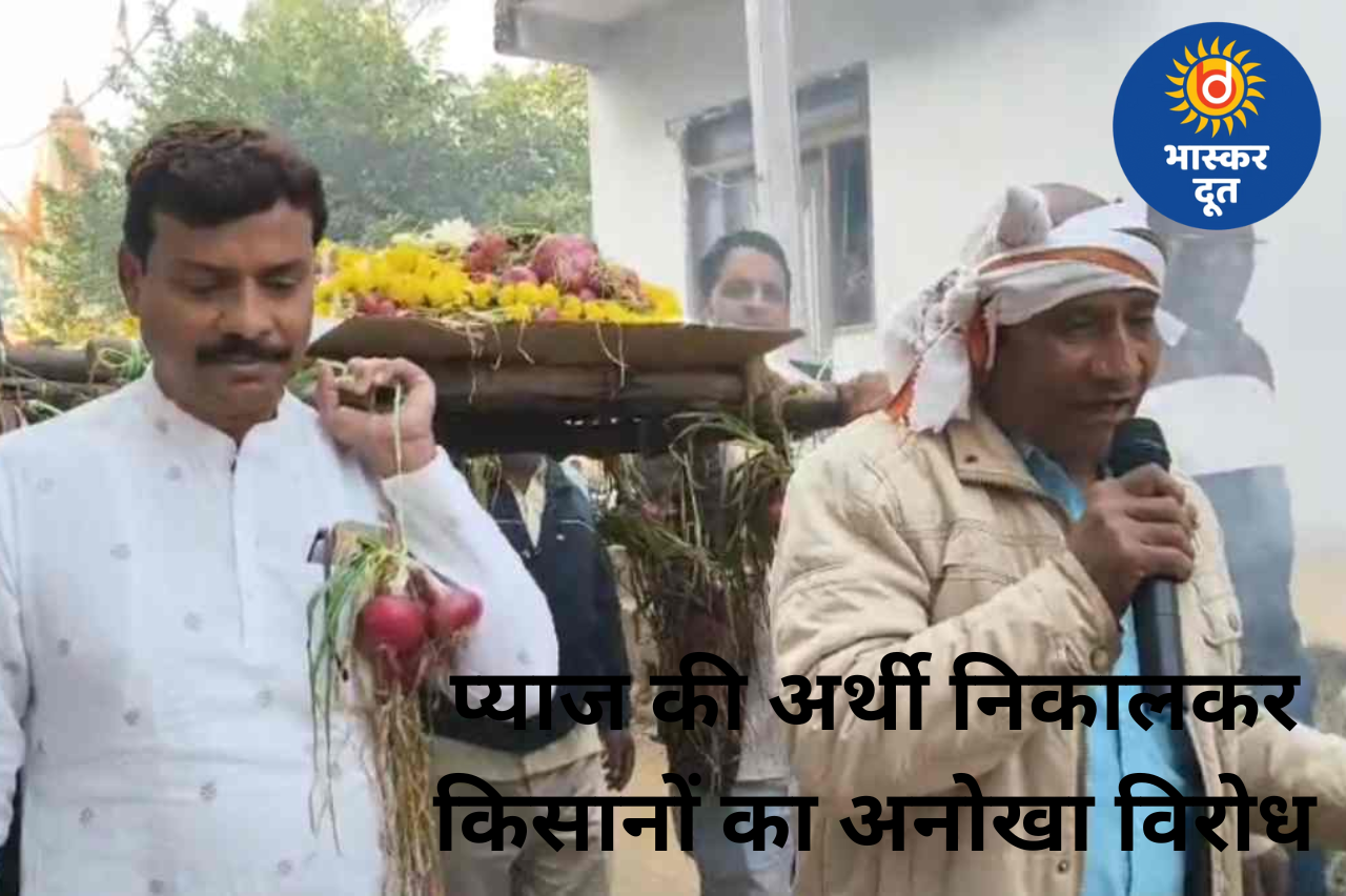 मध्य प्रदेश के मंदसौर जिले के धमनार गांव में प्याज की गिरती कीमतों से परेशान किसानों ने सोमवार को अनोखे तरीके से अपना विरोध दर्ज कराया। मंडियों में प्याज के दाम 1–2 रुपये किलो तक पहुंच जाने से नाराज़ किसानों ने प्याज की प्रतीकात्मक अर्थी सजाई और पूरे सम्मान के साथ उसकी अंतिम यात्रा निकाली। बैंड-बाजे के साथ चली इस अंतिम यात्रा में रघुपति राघव राजा राम की धुन बजती रही और किसानों ने भगवान से अच्छी कीमत मिलने की प्रार्थना भी की।