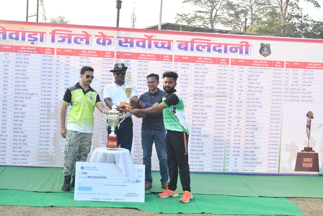 दक्षिण बस्तर दंतेवाड़ा जिले में अमर शहीदों की स्मृति में दंतेवाड़ा पुलिस द्वारा सामुदायिक पुलिसिंग के अंतर्गत आयोजित शौर्य स्मृति क्रिकेट टूर्नामेंट का आज ग्यारहवें दिन भव्य फाइनल मुकाबले के साथ सफल समापन हुआ।
