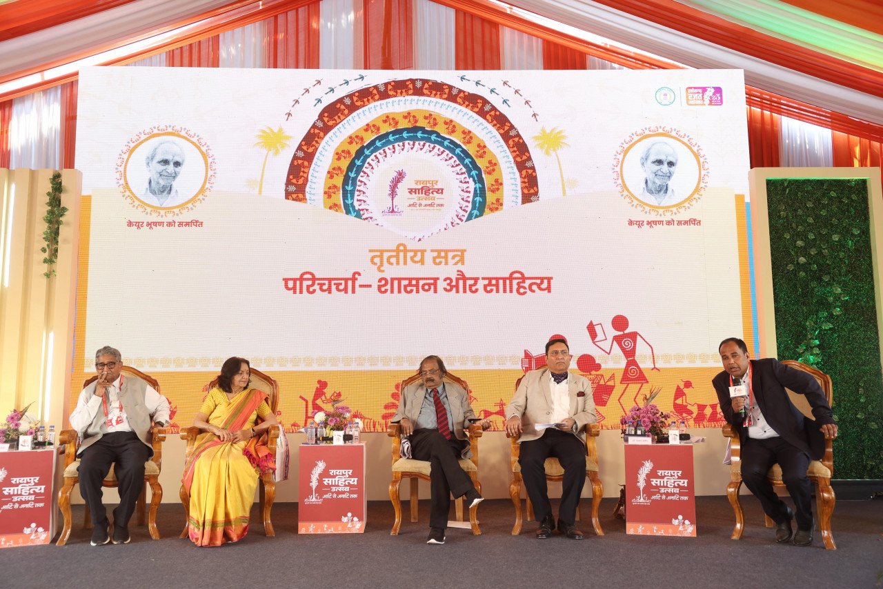 शासन और साहित्य विषय पर आज लाला जगदलपुरी मंडप में दिलचस्प चर्चा हुई। सूत्रधार थे कलेक्टर डॉ. गौरव सिंह और अतिथि वक्ता थे पूर्व आईएएस अधिकारी श्री बीकेएस रे, श्रीमती इंदिरा मिश्रा, डॉ. सुशील त्रिवेदी और डॉ. संजय अलंग। साहित्य में गहरी दिलचस्पी रखने वाले और अपनी प्रशासनिक क्षमता से प्रदेश में पहचान छोड़ने वाले अधिकारियों ने सूत्र बताए कि किस तरह साहित्य शासन-प्रशासन को जनकल्याण के लिए लगातार सकारात्मक दिशा में लेकर जाता है। कलेक्टर डॉ. गौरव सिंह ने कहा कि साहित्य समाज को जगाता है। डॉ. सिंह ने कहा कि अगर साहित्य केवल प्रशंसा करता है तो वो कमजोर हो जाता है और शासन यदि केवल नियंत्रण करता है तो वो कठोर हो जाता है इसलिए लोकतंत्र की असली ताकत यही है कि आलोचना को सुना जाए और संवेदना को नीति में बदला जाए। उन्होंने हिंदी साहित्य के इतिहास के प्रसंग बताते हुए कहा कि किस प्रकार वीरगाथा काल में कवियों ने राष्ट्रबोध जगाया और भक्तिकाल में उन्होंने वो मानक बताये जिससे शासन को चलाया जाना चाहिए। उन्होंने कहा कि साहित्य हमेशा केंद्र में रहा है और साहित्यकारों ने अपने प्रखर विचारों को हमेशा रखा। इस मौके पर डॉ. सुशील त्रिवेदी ने कहा कि साहित्य की शक्ति का अंदाजा इसी बात से लगाया जा सकता है कि स्वतंत्रता संग्राम में हमारे अनेक नेता साहित्यकार रहे। उस दौर में अंग्रेजों की आलोचना करने वाले साहित्यकारों की किताबों पर बैन लगाया गया। यह साहित्य की शक्ति है। उन्होंने दिनकर को उद्धृत करते हुए कहा कि जब राजनीति फिसलती है तो साहित्य उसे संभालता है। यह साहित्य की बड़ी शक्ति है। डॉ. संजय अलंग ने कहा कि साहित्यकार जो देखते हैं उसे लिख देते हैं यह आलोचना भी होती है और प्रशंसा भी होती है। नमक का दरोगा कहानी पढ़े तो ये ईमानदार अधिकारी की कहानी है और इस कहानी ने न जाने कितने लोगों के भीतर ईमानदारी के भाव भरे लेकिन सिस्टम में विसंगतियों को भी अनेक कहानियां अथवा निबंध सामने लाते हैं। उन्होंने शरद जोशी के लिखे व्यंग्य लेख जीप पर सवार इल्लियां का जिक्र किया। श्रीमती इंदिरा मिश्रा ने लेखिका तसलीमा नसरीन का जिक्र किया कि उन्होंने सच्चाई को सामने लाने की हिम्मत दिखाई और उन्हें निर्वासन सहना पड़ा। साहित्य सच को सामने लाता है और समाज को आइना दिखाता है। साहित्य संवेदनशीलता लाता है और जनकल्याणकारी शासन की नींव तैयार करता है। इस मौके पर बीकेएस रे ने कहा कि साहित्य हमारे मनोविज्ञान को बदलता है और एक संवेदनशील मनुष्य बेहतर प्रशासक बनता है। श्री रे ने फ्रांस के स्टूडेंट मूवमेंट का उदाहरण बताते हुए कहा कि नोबल पुरस्कार प्राप्त जीन पाल सार्त्र के नेतृत्व में हो रहे मूवमेंट को रोकने कैबिनेट के बैठक में चर्चा चली। जब