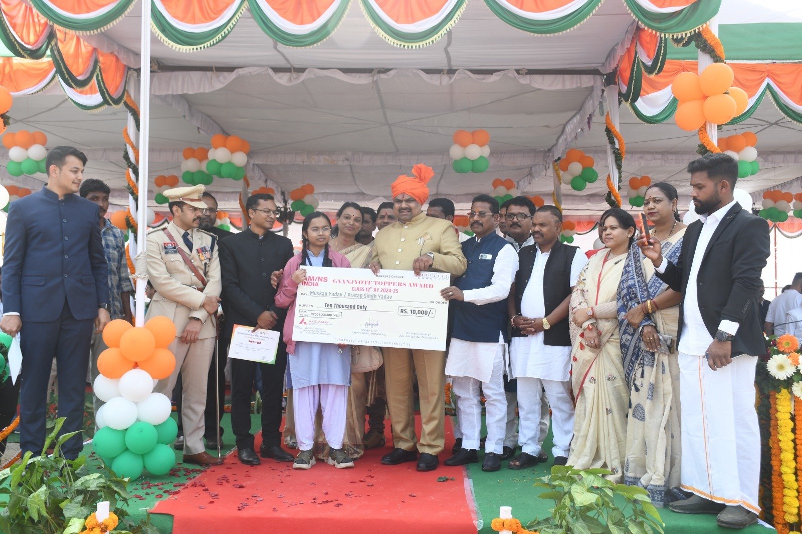 समारोह में क्षेत्रीय विधायक श् चैतराम अटामी, जिला पंचायत अध्यक्ष नंदलाल मुड़ामी, उपाध्यक्ष अरविंद कुंजाम, नगर पालिका अध्यक्ष श्रीमती पायल गुप्ता, जनपद पंचायत अध्यक्ष श्रीमती सुनीता भास्कर, जिला पंचायत सीईओ जयंत नाहटा, वनमंडलाधिकारी रंगानाधा रामाकृष्णा वाय, अपर कलेक्टर राजेश पात्रे सहित अन्य वरिष्ठ अधिकारी, अर्धसैनिक बलों के अधिकारी, मीडिया प्रतिनिधि, गणमान्य नागरिक, महिलाएं एवं बड़ी संख्या में शालेय छात्र-छात्राएं उपस्थित रहीं।