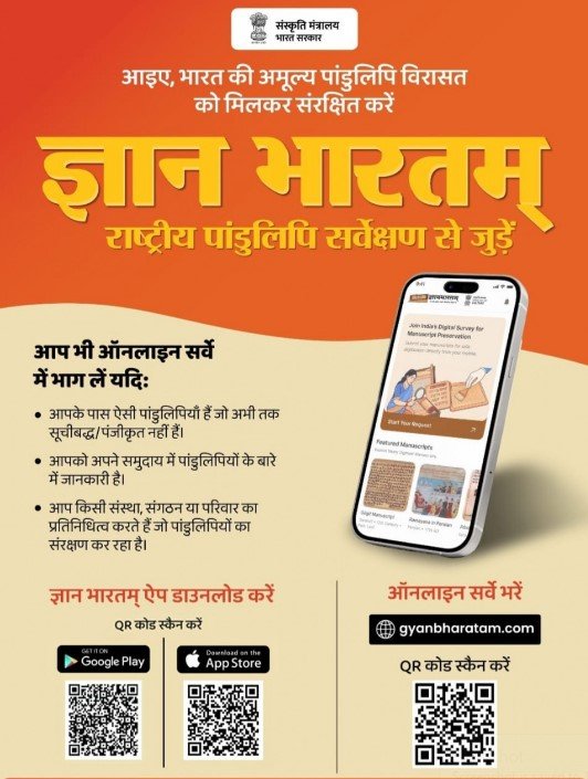 केंद्र सरकार द्वारा शुरू किया गया “ज्ञानभारतम राष्ट्रीय पांडुलिपि सर्वेक्षण अभियान” छत्तीसगढ़ में तेजी से गति पकड़ रहा है। इस महत्वपूर्ण पहल का उद्देश्य राज्य में उपलब्ध प्राचीन एवं ऐतिहासिक पांडुलिपियों का सर्वेक्षण कर उन्हें सुरक्षित, संरक्षित एवं डिजिटल माध्यम से भावी पीढ़ियों तक पहुंचाना है।