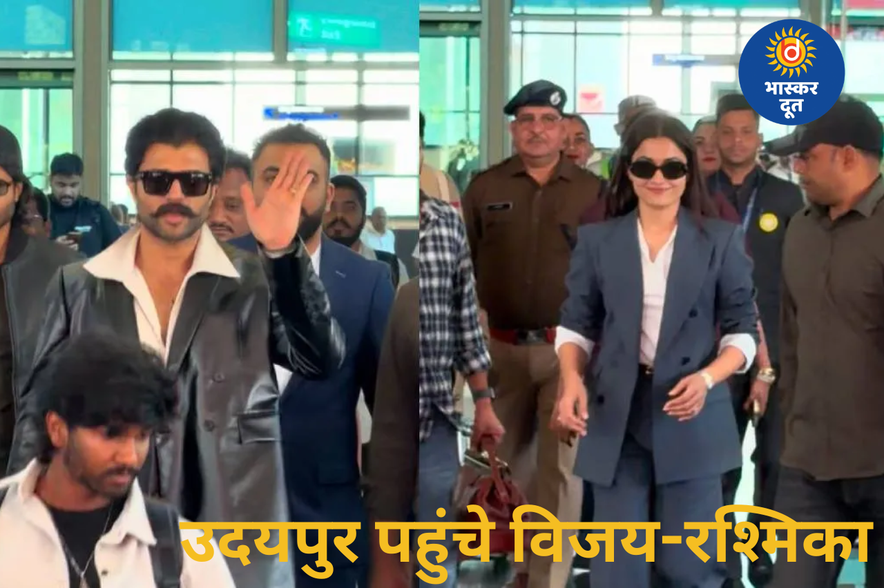 रश्मिका ने नीले रंग का पैंट-सूट और सफेद टॉप पहनकर बेहद कॉन्फिडेंट ‘बॉस लेडी’ लुक अपनाया। हाई हील्स और गॉगल्स ने उनके स्टाइल को और निखार दिया। वहीं विजय ब्लैक लेदर कोट, काली पैंट और सफेद शर्ट में नजर आए। उनकी बड़ी मूंछें और रफ-टफ अंदाज उन्हें गैंगस्टर लुक दे रहा था। दोनों का क्लासी और सादगी भरा अंदाज फैंस को खूब पसंद आया।
