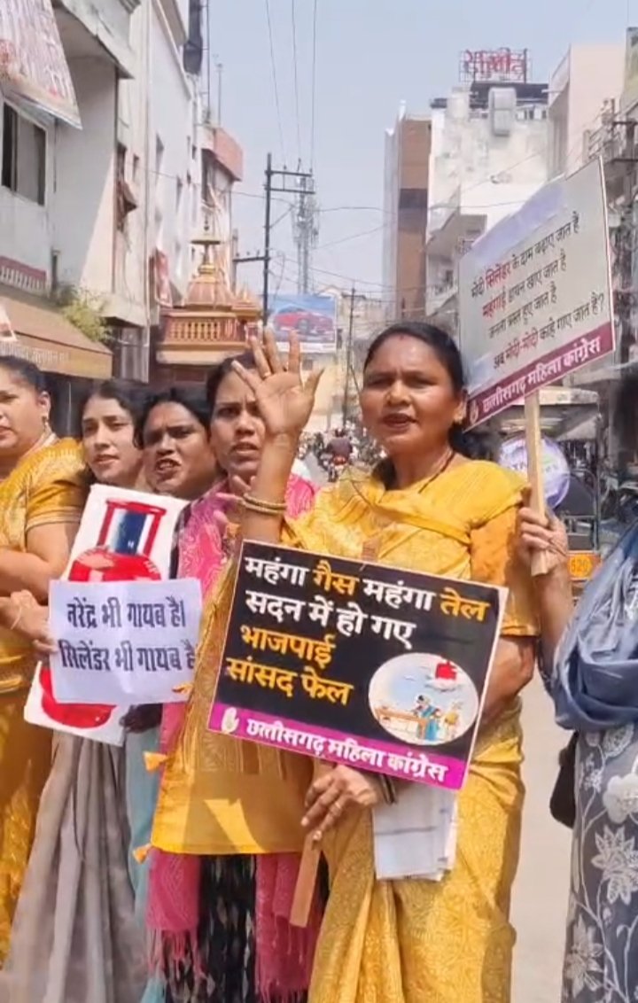 राजनांदगांव, 14 मार्च। बढ़ते एलपीजी सिलेंडर के दाम, बाजार में सिलेंडरों की कमी और लगातार बढ़ती महंगाई के खिलाफ आज शहर महिला कांग्रेस राजनांदगांव की अध्यक्ष माया शर्मा के नेतृत्व में जय स्तंभ चौक पर जोरदार विरोध प्रदर्शन किया गया। यह कार्यक्रम राष्ट्रीय महिला कांग्रेस अध्यक्ष अलका लांबा के निर्देश एवं राज्यसभा सांसद तथा छत्तीसगढ़ प्रदेश महिला कांग्रेस अध्यक्ष फूलो देवी नेताम के आदेशानुसार आयोजित किया गया।